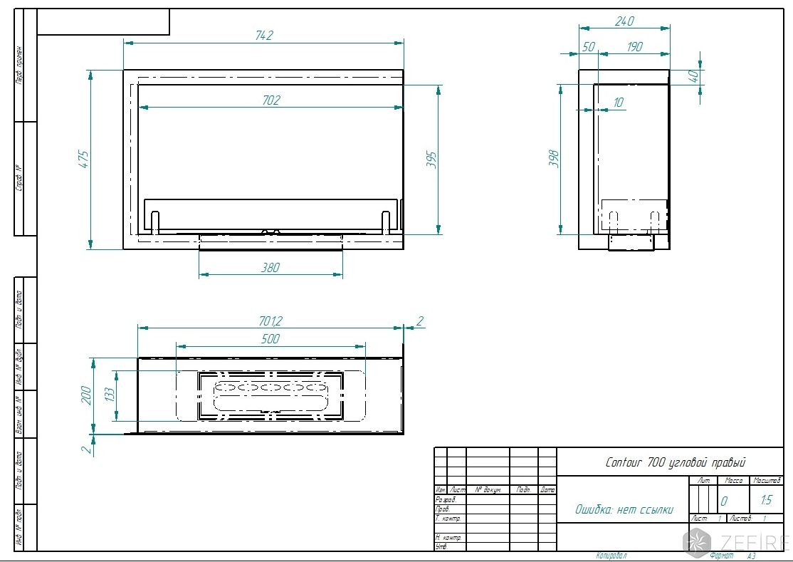 Биокамин Contour угловой 700 правый (Estetic Flame)
