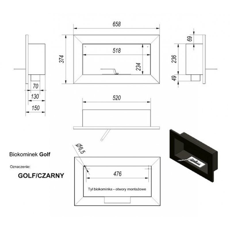 Биокамин Kratki GOLF HORIZONTAL