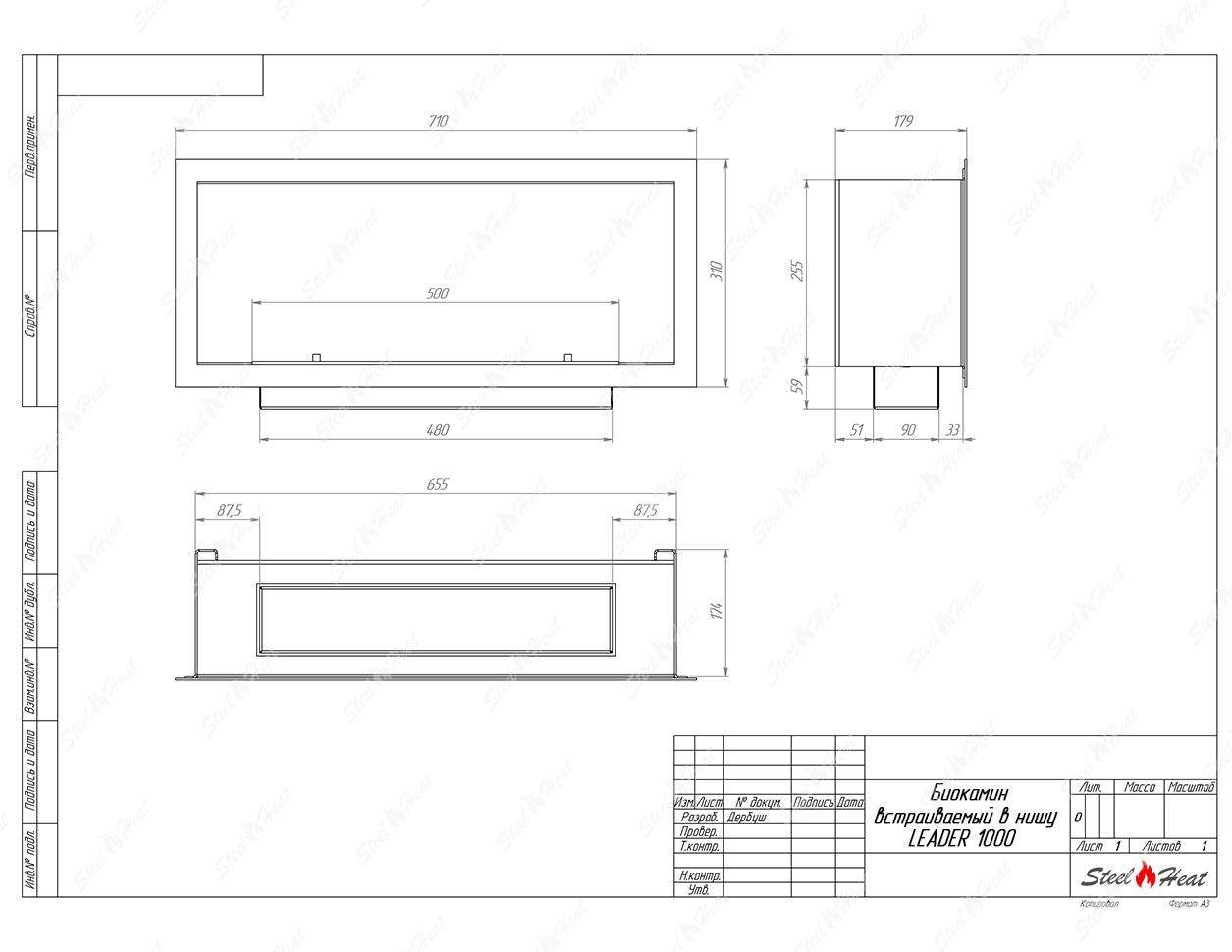 Встраиваемый Биокамин SteelHeat LEADER-SH 700 предназначен для встраивания в глухие ниши из гипсокартона, кирпича, пеноблоков, бетона.