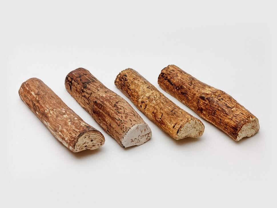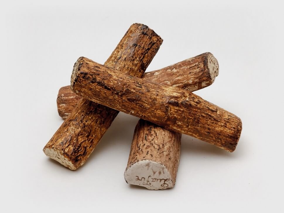 Керамические дрова изготавливаются из шамотной глины и керамического ангоба, проходят обжиг в специальной печи и расписываются в ручную. Не горят и не выделяют вредных веществ. Идеально подходят для декорирования встроенных биокаминов и линий огня