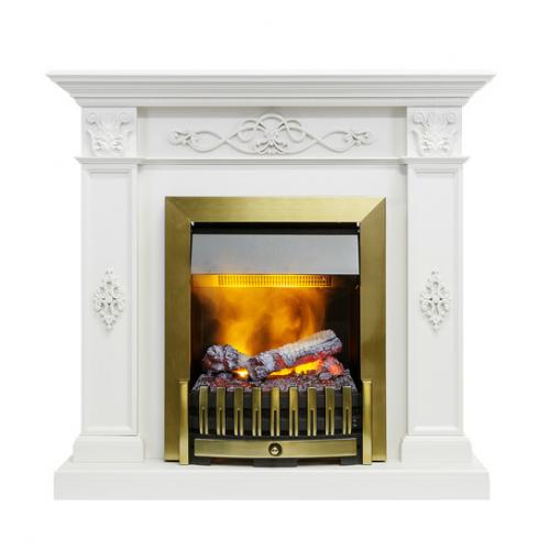 Каминокомплект «Derby» от производителя Dimplex, оборудованный паровым очагом «Danville Antic Brass», является ярким образцом элегантности и роскоши. Белый цвет портала отлично гармонирует с золотой расцветкой рамки очага. Отличается изделие небольшими габаритами, что позволяет не обращать на площадь помещения внимание при выборе – уместно электрокамин смотрится даже в небольших комнатах.