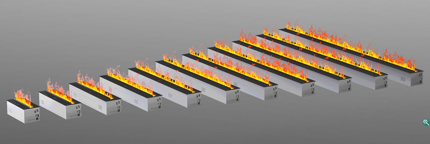 Создание «пламени» в них достигается за счет применения ультразвукового парогенератора. Микроскопические капли воды (туман), которые образуются, равномерно рассеиваются встроенным вентилятором. Получившееся облако особым образом подсвечивается разноцветными галогеновыми или светодиодными лампочками. Получившееся «пламя», в сочетании с очень достоверным «дымом» вырывается из искусственных поленьев. Иногда эта картина гармонично дополняется переливами и свечением искусственного угля. Выглядит такой очаг очень реалистично.