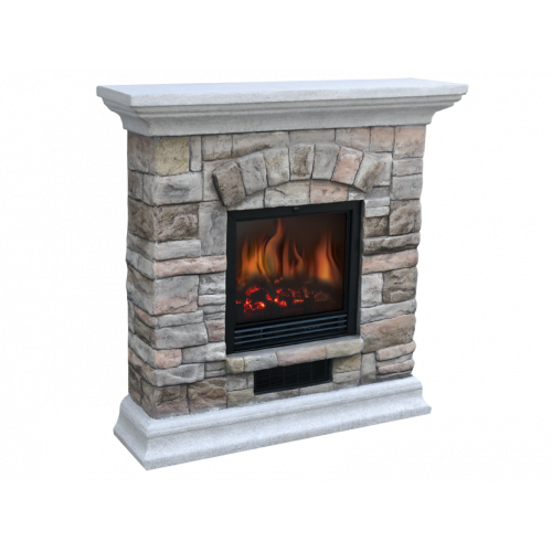 Конструктивно изделие имеет преимущественно ровные формы. Поверхность портала имитирует каменную кладку, а отдельные элементы в его оформлении выделены лишь изменением направления элементов кладки. Сверху над очагом сформирована арочная конструкция, а непосредственно перед топкой сформирована небольшая полочка. Сверху венчает всю конструкцию мощная многоступенчатая каминная полка. Поверхность полки имеет достаточную площадь для установки различных декоративных элементов. Устанавливается портал на невысокое основание, по форме напоминающее крышку портала. Эти два элемента по фактуре имитируют шлифованный песчаник.